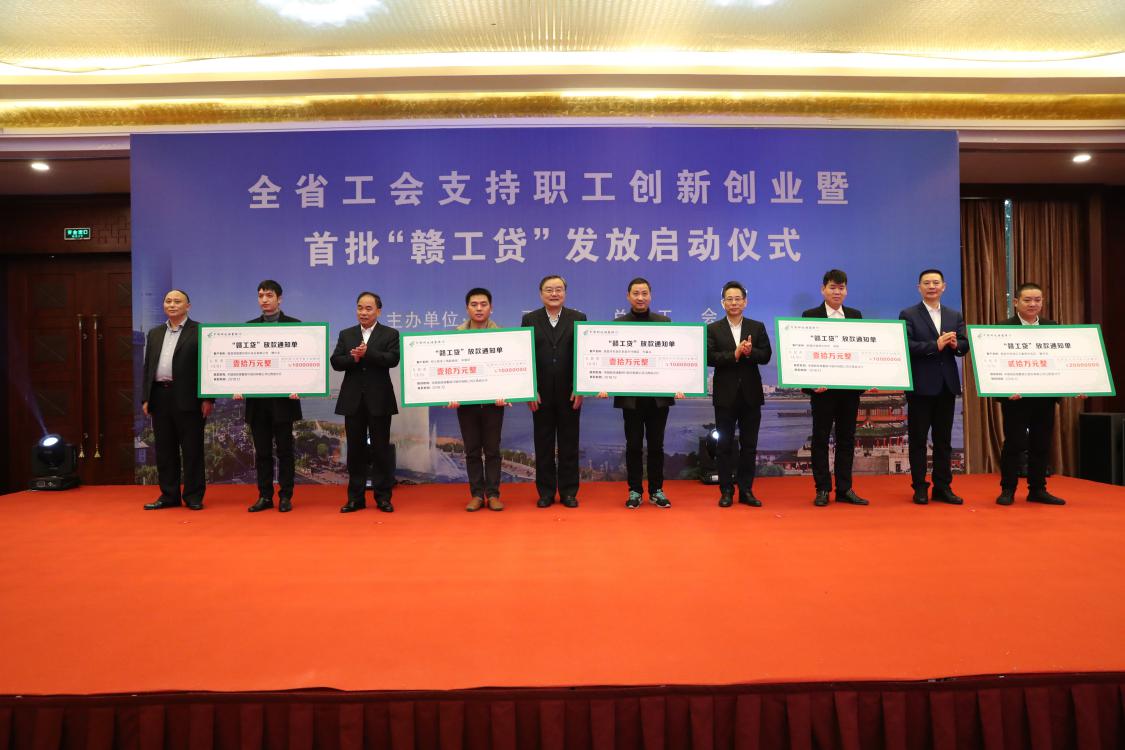 2018年12月,江西省总工会与江西邮储银行召开全省工会支持职工创新创业暨首批“赣工贷”发放启动仪式