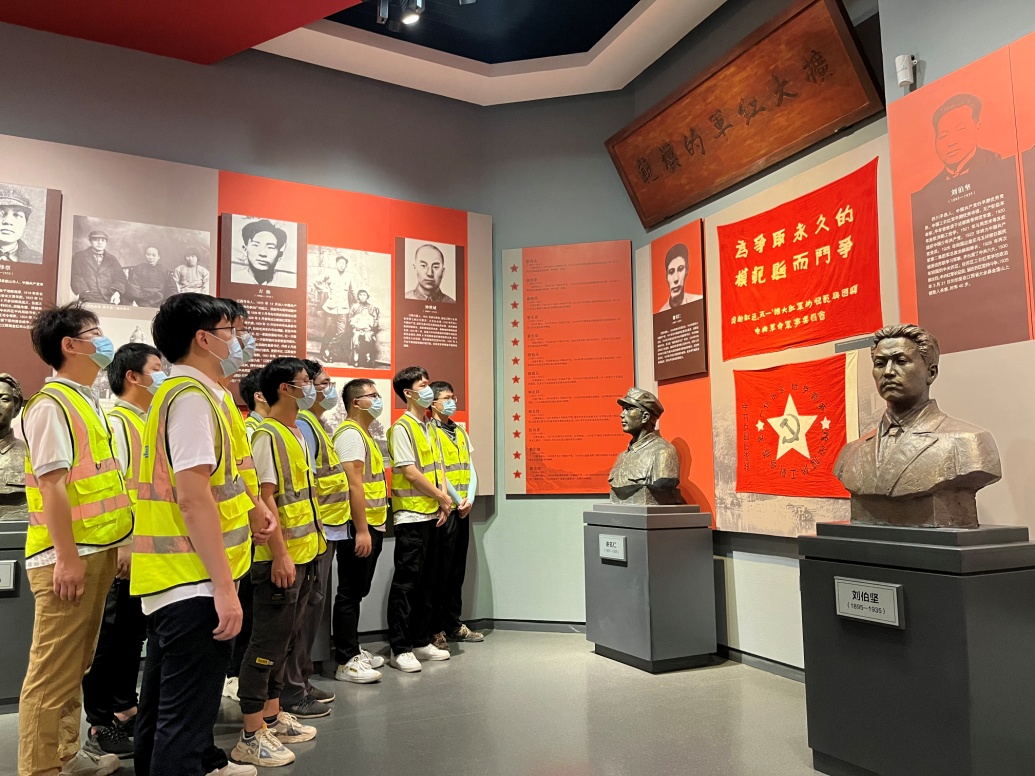 在景德镇,中建五局江西分公司景德镇先进陶瓷标准化厂房项目部到浮梁革命历史纪念馆开展“追寻红色记忆 建证美好时代”八一主题活动,项目党员为革命烈士纪念碑敬献花篮,并重温入党誓词,讲授露天党课。