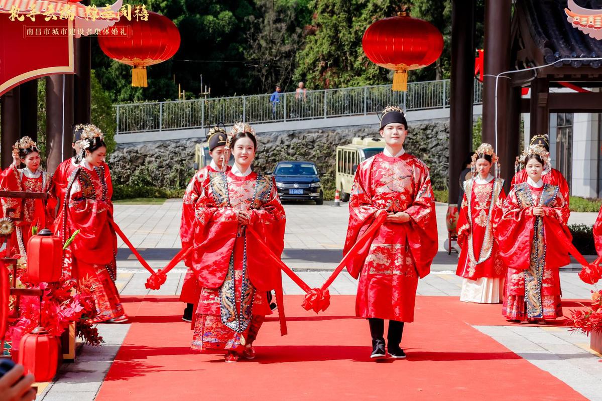在国庆76周年即将到来之际,一场属于南昌城市建设者的特殊婚礼在梅岭之巅启幕。9月26日,“爱我英雄城 见我文明行——南昌市城市建设者‘执手云端·豫章同禧’集体婚礼”在梅岭天净湖酒店举行。28对新人在融合家国同庆与赣鄱文化的氛围中,完成一场别开生面的云端婚礼。