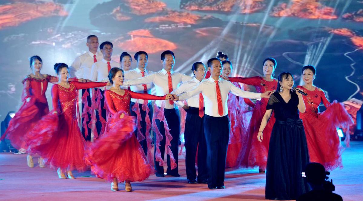 10月1日,在江西省德兴市凤凰湖畔,由本地群众自编自演的开场歌舞《我和我的祖国》为本次活动添彩增色。