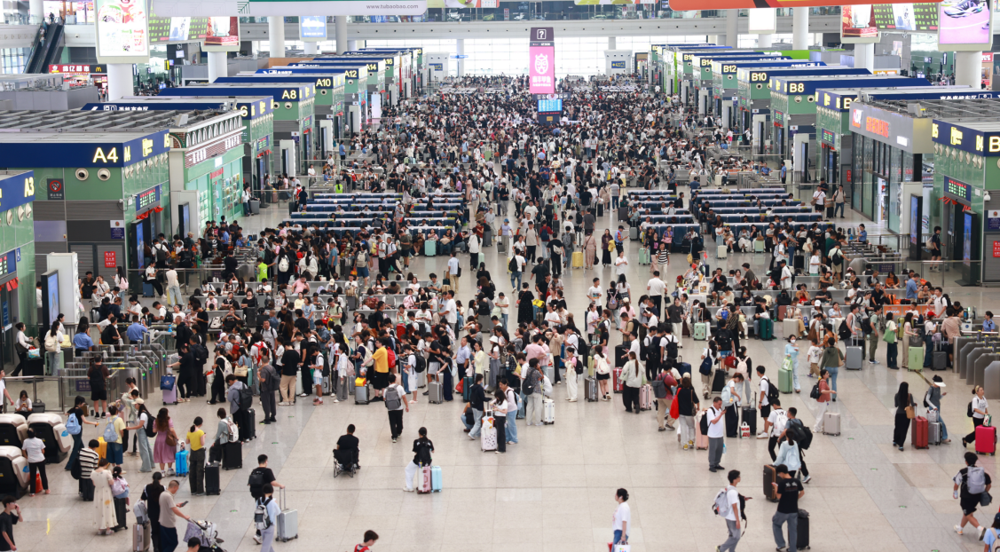10月7日,国庆中秋假期接近尾声,返程客流持续增长,预计今日发送旅客148万人次,其中江西、福建分别发送旅客78.4万人次、69.6万人次。
