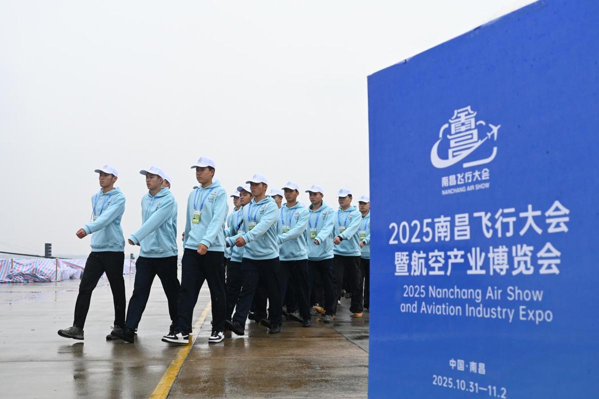 10月30日,连续服务7届南昌飞行大会的江西航空职业技术学院定向培养学院的“小白鹤”青年志愿者们在大会彩排现场进行军事化排练,将以最好的精神面貌投入志愿服务中,展现江西南昌青年的青春风采。