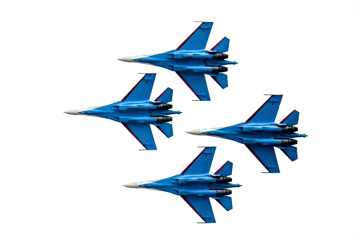 2025年11月1日,在江西省南昌市瑶湖机场,俄罗斯“勇士”飞行表演队四机特技飞行表演。