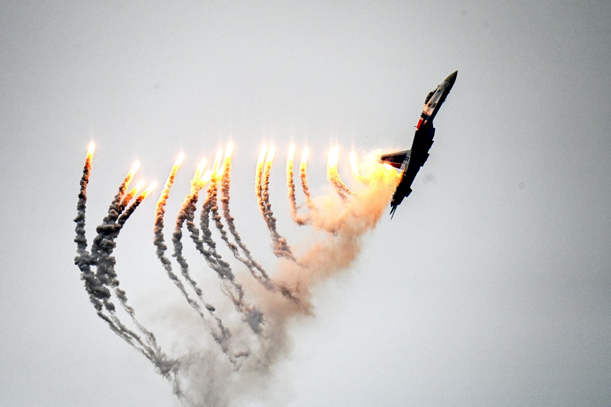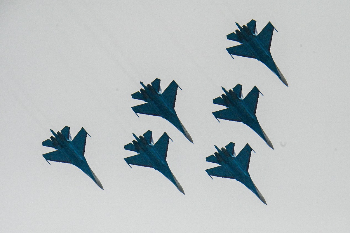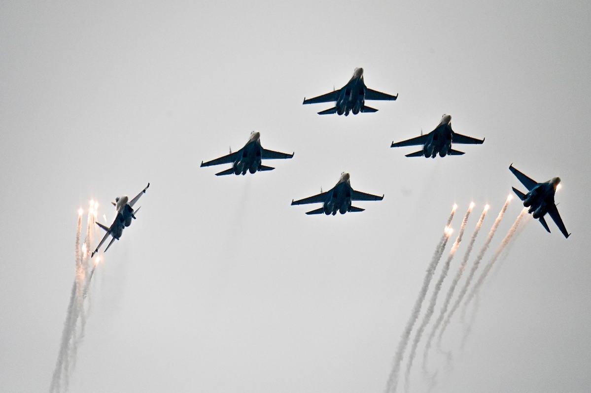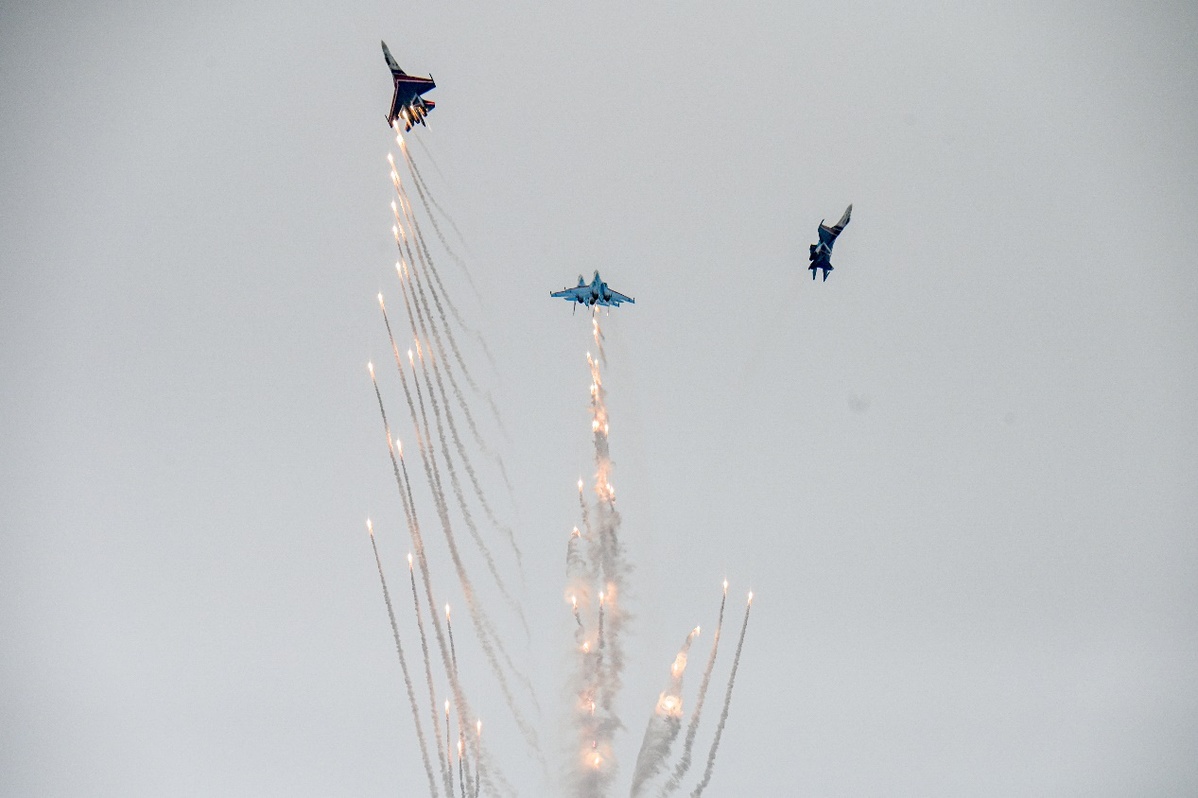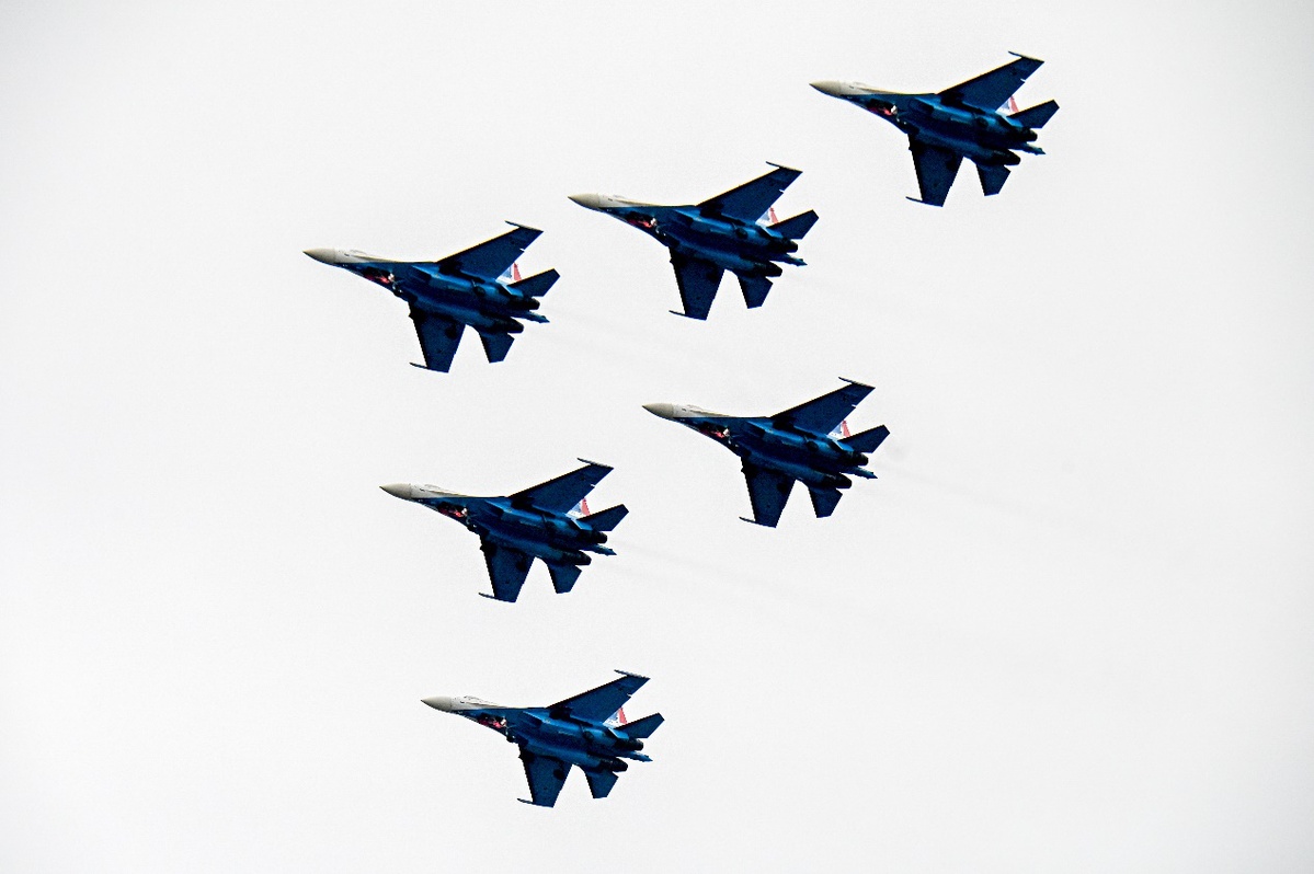 俄罗斯“勇士”飞行表演队驾驶苏-35S等重型战斗机,上演“落叶飘”“眼镜蛇机动”等经典高难度动作,为观众带来一场震撼的视觉盛宴。