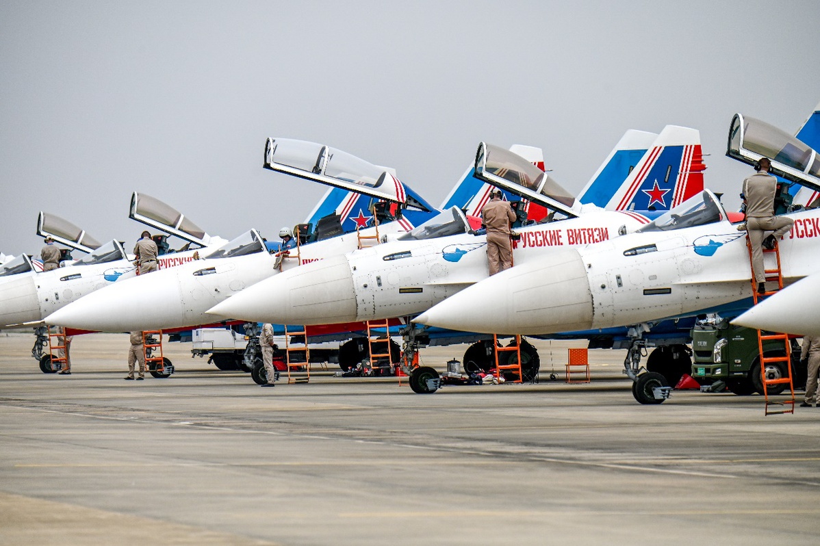 2025年11月1日,在江西省南昌市瑶湖机场,俄罗斯“勇士”飞行表演队作起飞前的准备。